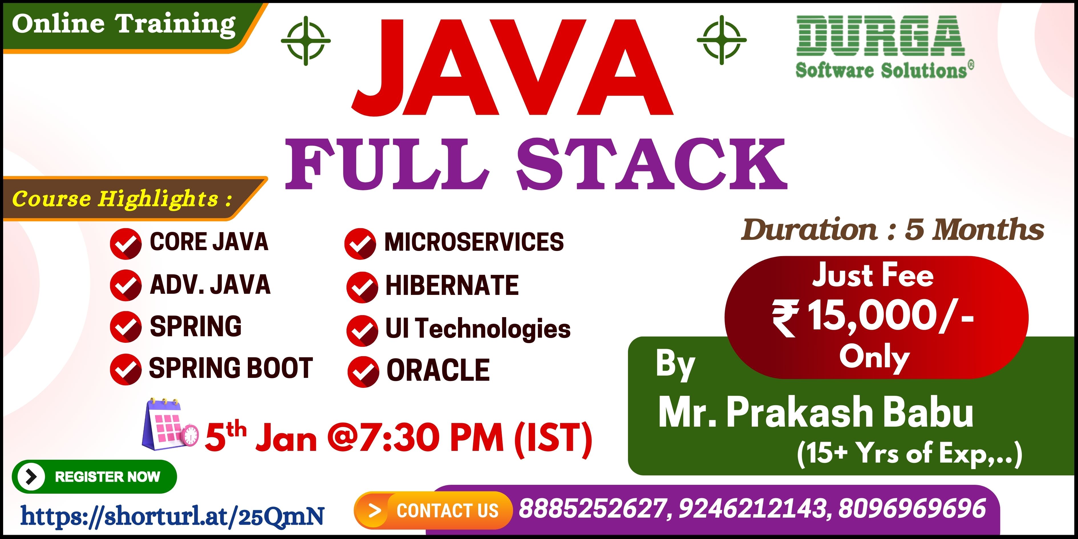 (CORE JAVA, ADV. JAVA, SPRING, SPRING BOOT, MICROSERVICES, HIBERNATE,